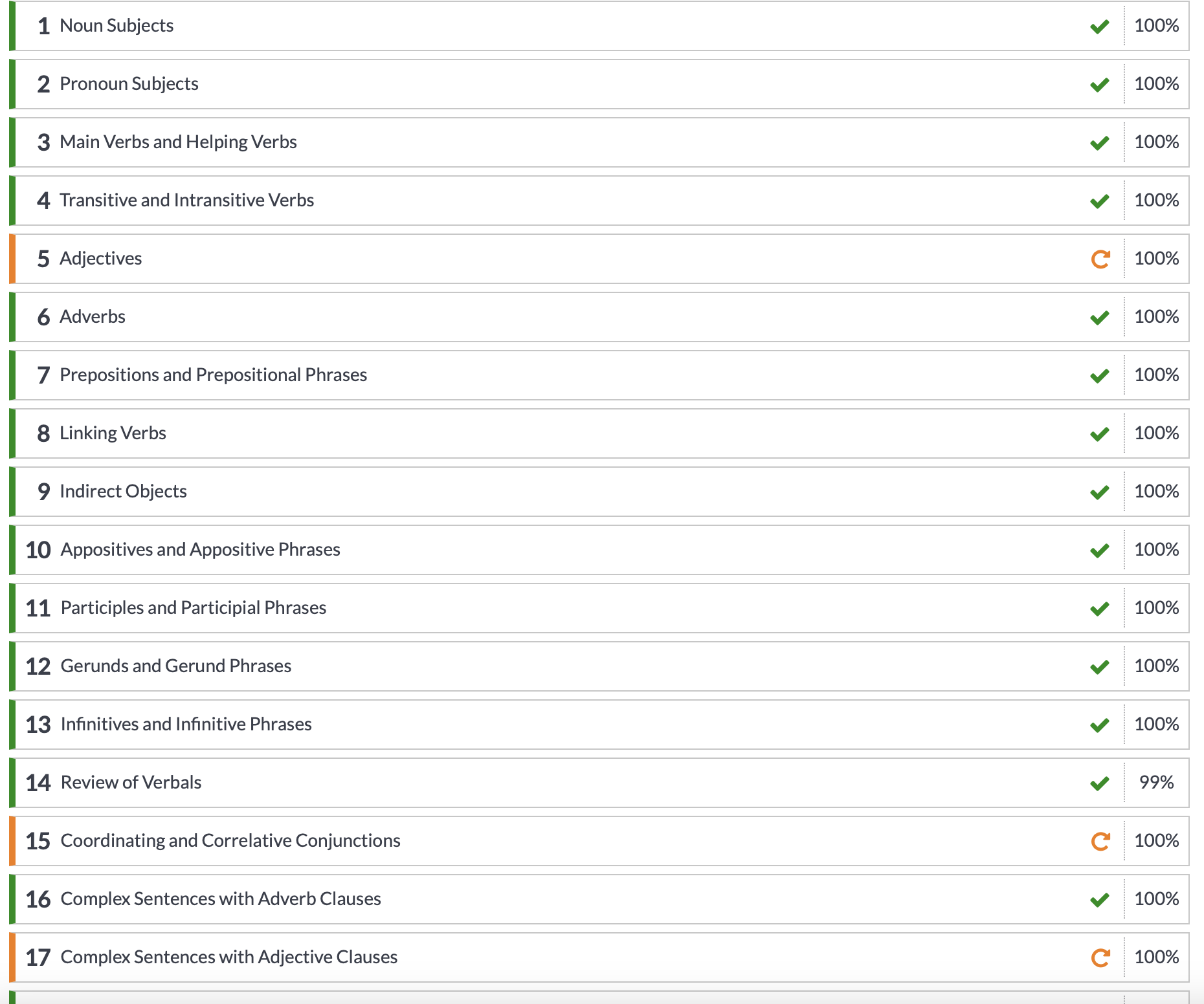 For international students, students transitioning from public school, or any student who did not learn Classical advanced grammar in grades 5-7, we recommend completing our grammar remediation. The grammar license will give the student full access to twenty video lessons and sixty auto-graded grammar lessons with enhanced feedback. From basic English grammar to advanced parsing, this self-paced grammar course is the ideal remediation for the student entering 8th grade, allowing the student to quickly catch up to his peers. This course can be completed before beginning 8th grade Flex or during the 8th grade Flex courses. Please note that this grammar course requires enrollment in Level 8 Core or Ultimate Flex. Course access will be emailed upon confirmation of enrollment.